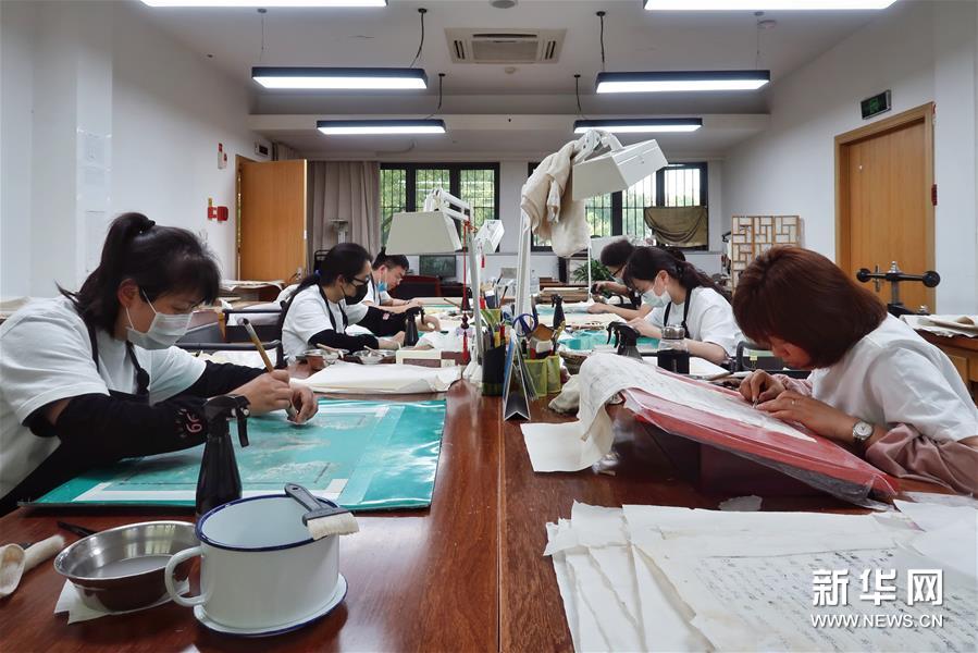 天一閣藏品修復(fù)部目前有修復(fù)師14人,每年約修復(fù)古籍14000余頁(yè)。據(jù)介紹,修復(fù)一冊(cè)古籍通常需要1至2個(gè)月,有的甚至需要1年以上。 新華社記者 鄭夢(mèng)雨 攝