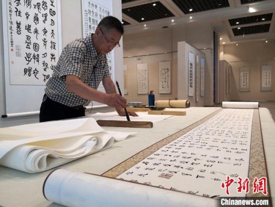 圖為朱群和他的敦煌漢簡書體。 高瑩 攝