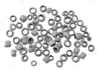 在出土的文物中,有一件連珠紋釉陶杯。這是一件玻璃態(tài)水杯,出土?xí)r人們還發(fā)現(xiàn)了一些疑似杯子的殘片,在同一墓坑中還同時出土了大量料珠。這個玻璃態(tài)水杯紋飾獨特,通體藍色釉飾,底部手握處,竟然設(shè)計有7圈珠紋。顯然,這些凸出的珠紋,除了美觀外,還可以增加摩擦,避免杯子從手中滑落,當(dāng)然也不排除珠紋還有其他含義。