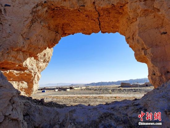 圖為冬日陽光下,山丹古長城遺址風貌。 翟繼宗 攝
