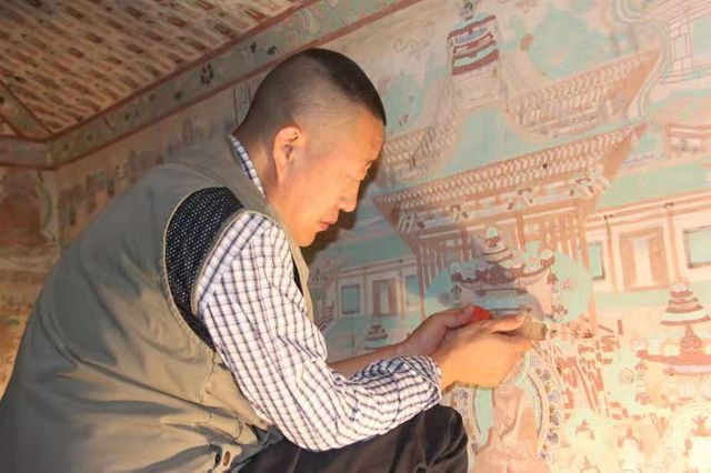 1990年,李云鶴的兒子李波同樣成為了敦煌研究院的文物修復師。對于生于敦煌、長于敦煌的李波而言,回到敦煌修壁畫是一件再自然不過的事情,“家里有一位修壁畫的父親,這對我的影響是極大的。而且這里是我的故鄉(xiāng),我對敦煌對莫高窟,有感情也有責任。”