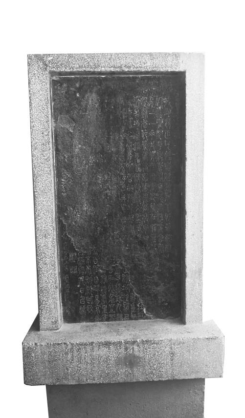 和文化宮的其他幾方大碑比起來,這方石碑不算大,碑面黑黑的,這是人們制作拓片時留下了墨。碑面風(fēng)化剝落得比較嚴重,只剩下右上方和左下方兩部分,風(fēng)化剝落了大部分,能看清楚開頭和結(jié)尾。成行的字,只有最邊上的落款。