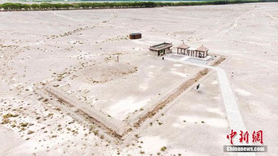 嘉峪關新城魏晉墓群六號墓是一座典型的三室墓,由前、中、后三個墓室組成。圖為7月中旬,六號墓航拍圖。高展 攝