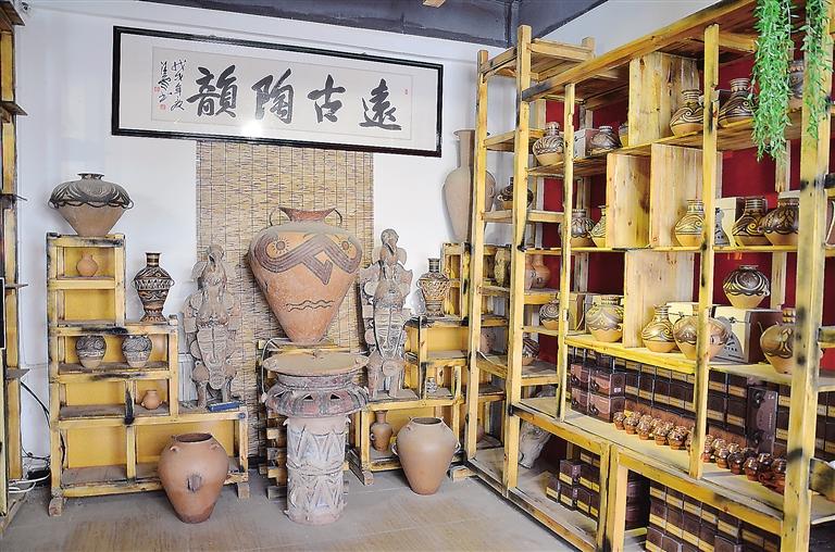 走進(jìn)彩陶藝術(shù)館,目之所及都是造型獨(dú)特的仿彩陶罐,在墻上可以看到陶片裝飾的藝術(shù)品,細(xì)節(jié)透著“彩陶之鄉(xiāng)”的文化底蘊(yùn)。