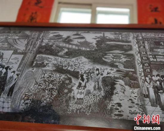 中新網(wǎng)蘭州11月17日電 (記者 楊娜 高瑩)“黛玉進(jìn)京”“寶黛初會”……耗時(shí)十余載,蘭州七旬藝人陶世清將《紅樓夢》中的三十余個(gè)經(jīng)典場景搬上大理石。在一塊長一米四,寬五十厘米的大理石上,人物的動作、表情惟妙惟肖,桌椅帷幔、亭臺樓閣精致細(xì)膩。