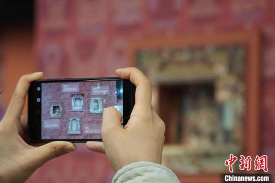 圖為觀眾欣賞數(shù)字復制壁畫?!【琶赖┰?攝