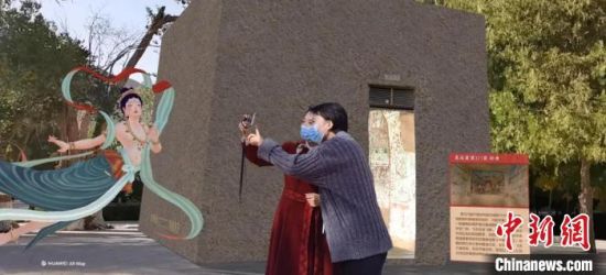同時,游客還能收獲與眾不同的“打卡照”,在景區(qū)與不同朝代的“飛天”進行親密互動,在特殊的場景中還能與九色鹿、3D大佛等虛擬形象合影留念。