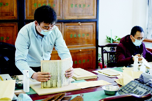 1月5日,記者來到市圖書館古籍部,工作人員正在對破損古籍進行全手工修復。