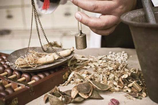 有時趁他空閑, 我便去他的中藥鋪里坐坐,最喜歡聞他藥鋪里散發(fā)的那種清苦的藥草香。而看他抓藥的過程,更是一種視覺享受。每次他先把藥方仔細(xì)瀏覽一遍,然后才開始抓藥。值得一提的是,他瞄一眼藥方,就能快速找到相應(yīng)的中藥匣子。對于用量不太精確的藥物,他僅憑手抓,基本準(zhǔn)確。對于用量必須精準(zhǔn)的藥物,他會那樣耐心地放進(jìn)一個叫“戥子”的小秤里稱一稱,添一點(diǎn)或減一點(diǎn),然后將藥倒入柜臺上鋪好的麻色毛邊紙里,橫折一下,豎折一下,熟練地包起來,用細(xì)細(xì)的麻繩扎緊,反復(fù)交代幾句,遞給病人??粗@行云流水的動作,患者的疼痛仿佛也一下減輕了許多。