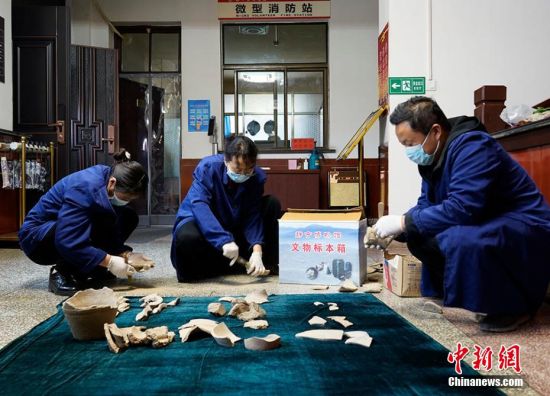 3月9日,甘肅平?jīng)鍪徐o寧縣博物館工作人員根據(jù)村民提供線索,在當?shù)刭Z河鄉(xiāng)竇坪村發(fā)現(xiàn)仰韶文化人首型器口、石器、佩飾、彩陶片、紅陶片等文物標本200余件。靜寧縣博物館工作人員表示,這一重大發(fā)現(xiàn)對研究當?shù)貧v史文化有重要意義。 夏劍鋒 攝