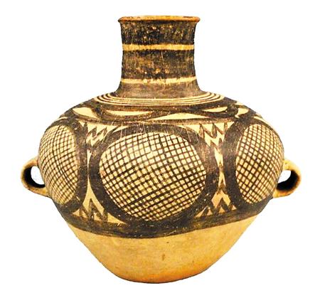 馬家窯文化半山類型圓圈網格紋雙耳彩陶罐