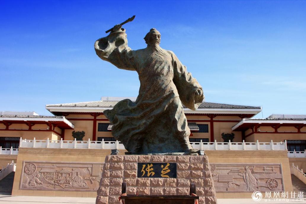 張芝雕塑。揮舞著如椽大筆,頓覺(jué)滿紙風(fēng)動(dòng),氣壯山河。瓜州縣委宣傳部供圖