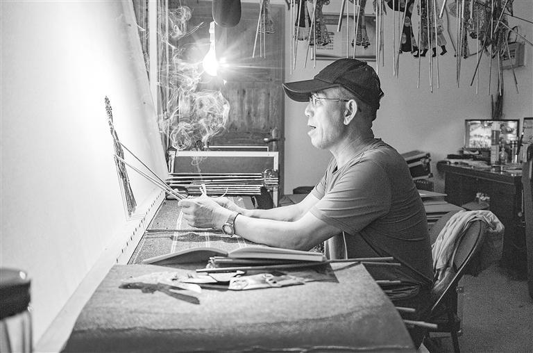 皮影藝人表演中 張應(yīng)君
