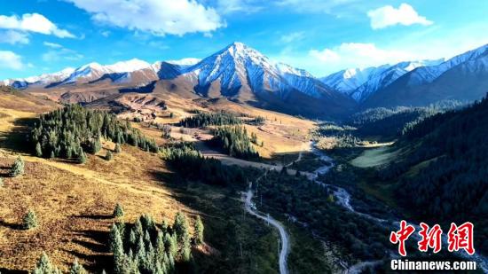 今年截至11月4日,中國東北地區(qū)大部、新疆、青海、西藏、內(nèi)蒙古、甘肅等地都已經(jīng)進入氣象意義上的冬季。圖為薄雪覆蓋山巒和林區(qū)。