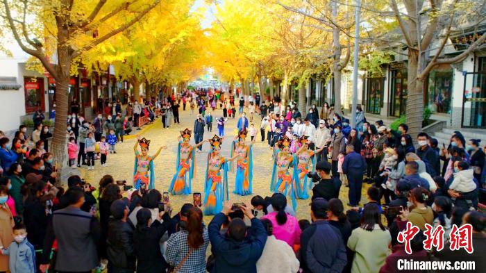 11月中下旬,在甘肅省天水市秦州區(qū)“黃金大道”上演了“絲路舞姿”,舞蹈是由秦州區(qū)文旅局組織的舞蹈隊(duì)帶來(lái)的舞蹈《絲路》《醉太平》和《萬(wàn)疆》等。該路段由于216株銀杏樹的金黃色樹葉彼此參差相連,宛如兩條“黃金色帶”在道路兩側(cè),所以被當(dāng)?shù)鼐用穹Q為“黃金大道”。