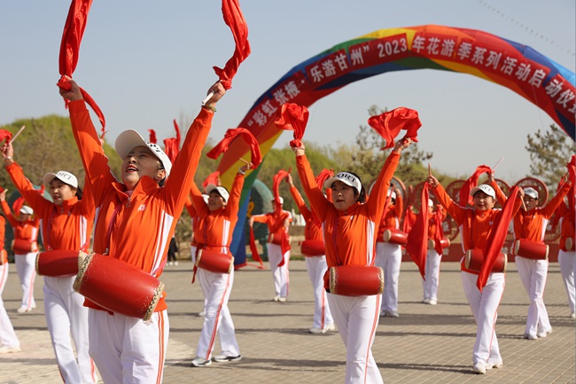 人民網蘭州4月9日電 (記者高翔)4月8日,“彩虹張掖·樂游甘州”2023花游季系列活動啟動儀式在甘肅省張掖市潤泉湖公園舉行。