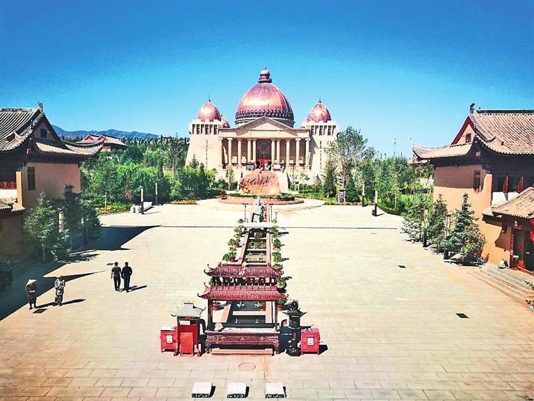 “驪靬古城”又被稱為“和平之城”。古城建在原古寺金山寺舊址上,城墻氣勢恢宏,東西南北各建門樓,四角各筑角樓。城內(nèi)建筑錯落布局,尤以外形具羅馬式建筑風(fēng)格的“萬神殿”最醒目,金色穹頂,羅馬石柱,刻有圖案,工藝精致,清新典雅。拾級上城墻,四周杏黃旗圍繞,迎風(fēng)獵獵。城東古羅馬廣場小巧玲瓏,別具一格;城南祁連山山巒相連,松柏林立;城西巍峨俊秀的胭脂山遙遙相對;城北建有幸福樂園。遠眺,永昌縣城全貌一覽無余。