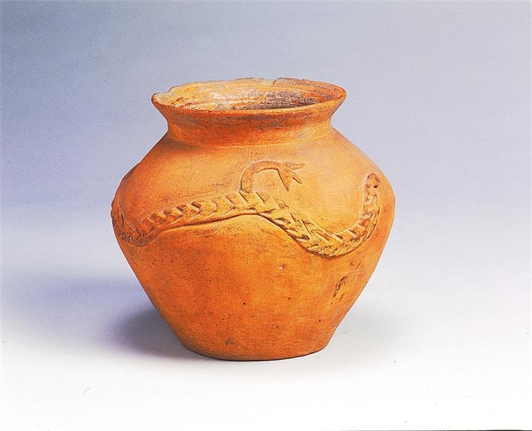 齊家文化 凸堆龍紋紅陶罐 甘肅省博物館藏