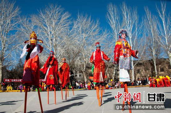 2024年春節(jié)假期,敦煌市組織城鄉(xiāng)9支社火隊(duì)在城區(qū)開(kāi)展社火展演活動(dòng),讓游客近距離體驗(yàn)和感受敦煌民俗文化的獨(dú)特魅力,營(yíng)造紅紅火火、熱鬧喜慶的節(jié)日氛圍。王斌銀 攝
