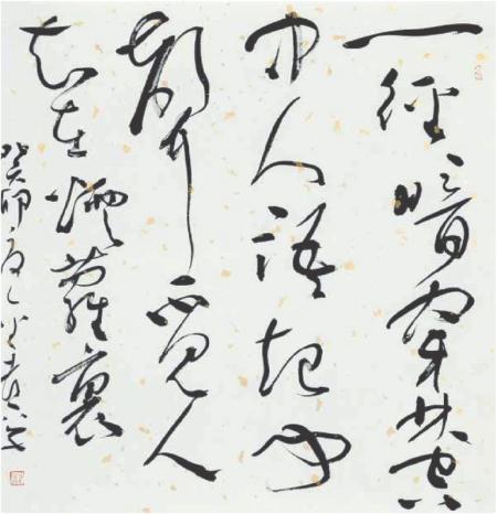 走出去,站在全國的高度,集中進行學(xué)習(xí)和交流,對一個立志進取的書法家,可以說是一個脫胎換骨的修煉,中國書法發(fā)展的當(dāng)代狀態(tài),成為進取的最大參照,風(fēng)格極力貼近時代風(fēng)尚,在此基礎(chǔ)之上加入個人的鮮活語素,在作品中即表現(xiàn)出了時尚,又有自己的構(gòu)想,才有自己的一席之地。侯金喜抓住時代脈搏,積極捕捉在展覽中尚處于不顯眼的元素,不斷加以顯化,使個人的作品在龐大的展出體系中獨具風(fēng)采,難度可想而知,在高手如林的態(tài)勢下,侯金喜知難而上、刻苦磨煉,向經(jīng)典取法,向當(dāng)代名家問路,雙向融合、求新求變,經(jīng)過了這樣一個長的時段的求索,他的草書在全國眾多的草書家中拔地而起,引發(fā)了廣泛的關(guān)注??此牟輹兓亩劝盐赵诹艘粋€比較妥帖的度上,他不以奇異詭變?yōu)槌缟?,筆畫塑造大體以傳統(tǒng)語言為宗,使柔和與剛健統(tǒng)馭在一起,這種立意基本圍繞中國書法流變的中軸線,可以受到時間的考驗,在一些筆畫中注入的時代信息,經(jīng)過個人的藝術(shù)提煉,具有了新的生氣。在結(jié)構(gòu)選擇上,他同樣進行了深思熟慮,反復(fù)篩汰了過度追求時髦的招數(shù),一直強調(diào)深層次的內(nèi)涵,把一個結(jié)體放在歷史的縱向上反復(fù)琢磨,他自己認(rèn)為,形象造型只有沿著時序的推進,才能有機地融入歷史,成為藝術(shù)的終極選擇,所以侯金喜的探索是審慎的,邁進是疊復(fù)的,我們欣賞他的作品,可以看出他思考的勤謹(jǐn),每一個階段都有不同的表達,欣賞者隨著他的筆觸的流瀉,可以領(lǐng)略到豐富的視覺享受。