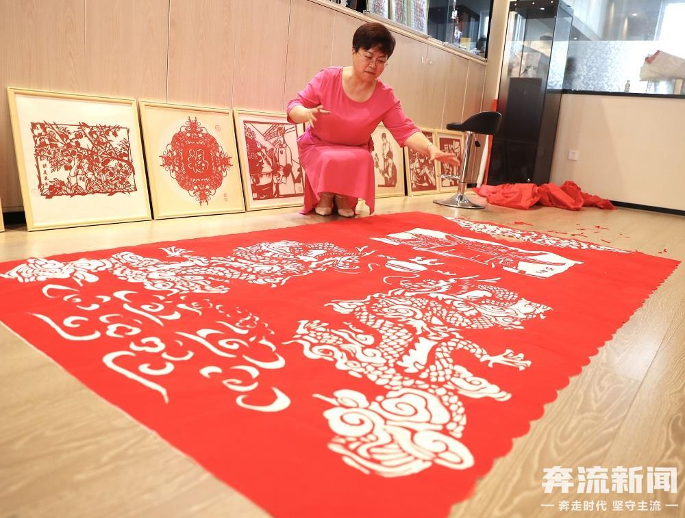 一把小巧的剪刀、一件裁好的紅布,折線與剪線交錯(cuò),刀鋒沙沙在紅布上游走……為獻(xiàn)禮2024(甲辰)年公祭中華人文始祖伏羲大典,天水市秦州區(qū)區(qū)級(jí)玉雕技藝非遺傳承人、剪紙傳承人尹麗珺,歷時(shí)半個(gè)月制作完成了長2.5米、寬1.5米的大型“龍鳳呈祥”龍圖漢服剪紙服裝,“這是一份獻(xiàn)禮,也是對(duì)伏羲文化的另一種傳承。”