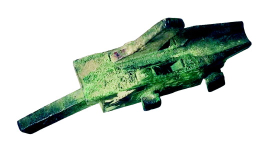 出土的青銅弩機(jī)共三件,制作精巧,外觀平整光潔。大件長(zhǎng)14.5厘米,寬12.8厘米,重量為1031.9克。中件長(zhǎng)14.9厘米,寬7.4厘米,重量為540克。小件長(zhǎng)10厘米,寬4厘米,重量為11克。這三件弩機(jī)除了小件稍有點(diǎn)殘缺外,其余兩件基本完整。三件弩機(jī)造型沉穩(wěn),小巧玲瓏,且機(jī)廓都由青銅鑄造,這在已出土的弓箭類文物中比較罕見。經(jīng)過(guò)專家鑒定,這是三國(guó)時(shí)期魏蜀征戰(zhàn)天水時(shí)的遺留文物。