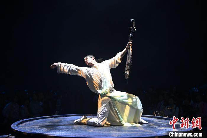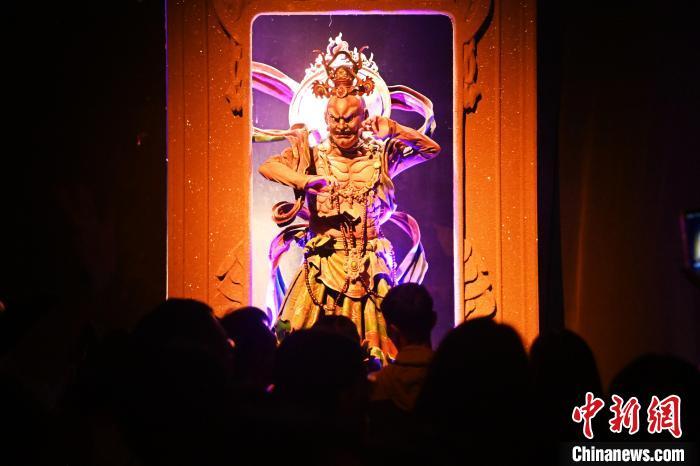 9月5日晚,甘肅敦煌旅游熱度不減,眾多游客觀看大型洞窟式沉浸體驗劇《樂動敦煌》。該劇溯源敦煌文化,借助對莫高窟壁畫、藏經洞古籍進行解讀,用全息投影、3D威亞等高科技手段,以全沉浸式的呈現方式,演繹西域少年追尋藝術的傳奇故事。劇中運用了琵琶、排簫、阮等民族樂器及仿制敦煌古樂器的音色,通過胡旋舞、腰鼓舞、琵琶舞等典型舞蹈,展現了敦煌壁畫中的樂舞盛景,全面展現敦煌傳承千年的樂舞文化魅力。九美旦增 攝