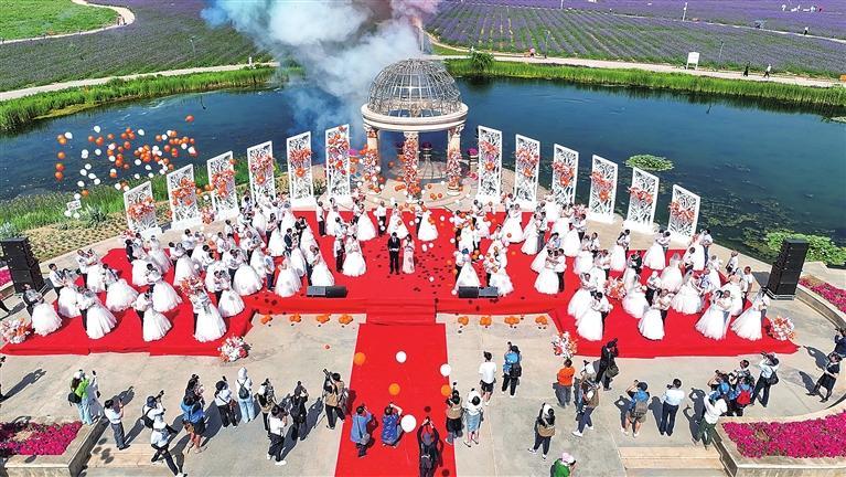 陽光、微風(fēng)、花海……夏季的金昌紫金花海充滿浪漫氣息,溫柔而熱烈。6月29日上午,連續(xù)舉辦七屆的“遇見愛,遇見你”薰衣草集體婚禮如約開場(chǎng)。近年來,一場(chǎng)場(chǎng)薰衣草之約集體婚禮引領(lǐng)金昌婚慶經(jīng)濟(jì)進(jìn)入一個(gè)快速發(fā)展階段,集體婚禮也成為金昌旅游對(duì)外宣傳推介的一張亮麗名片。