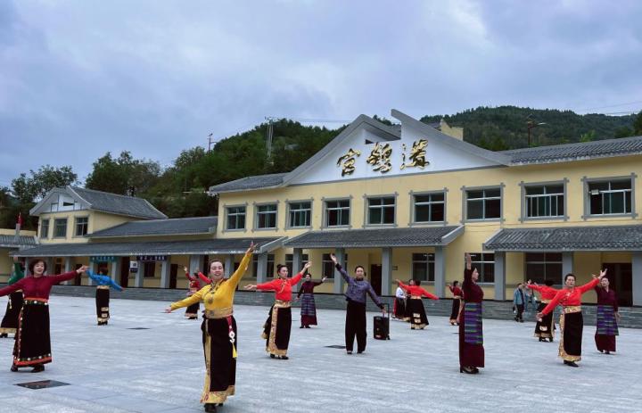 在官鵝溝大景區(qū)內(nèi),身著民族服飾的表演者載歌載舞。(受訪者供圖)