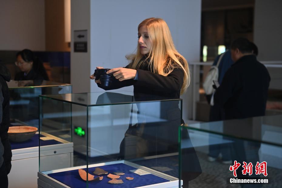 ?。保霸拢玻踩眨玻埃玻辞嗄隄h學(xué)家研修計劃甘肅班團隊22個國家的青年漢學(xué)家,走進甘肅省天水市秦安縣大地灣遺址參觀并進行專題研修。大地灣遺址是新石器時代大型聚落遺址,出土了中國乃至世界上最早的彩陶文化、最早的文字符號、種植生產(chǎn)了中國第一批糧食品種黍、出現(xiàn)了最早的宮殿式建筑、發(fā)明了世界最早的水泥地面、創(chuàng)造了最早的繪畫作品——F411地畫。圖為國外青年漢學(xué)家拍攝大地灣博物館藏品。中新社記者 李亞龍 攝