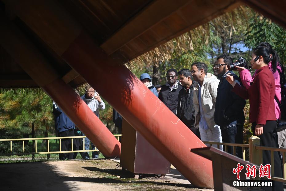 10月22日,2024青年漢學(xué)家研修計劃甘肅班團隊22個國家的青年漢學(xué)家,走進甘肅省天水市秦安縣大地灣遺址參觀并進行專題研修。大地灣遺址是新石器時代大型聚落遺址,出土了中國乃至世界上最早的彩陶文化、最早的文字符號、種植生產(chǎn)了中國第一批糧食品種黍、出現(xiàn)了最早的宮殿式建筑、發(fā)明了世界最早的水泥地面、創(chuàng)造了最早的繪畫作品——F411地畫。圖為22國青年漢學(xué)家參觀大地灣遺址。中新社記者 李亞龍 攝