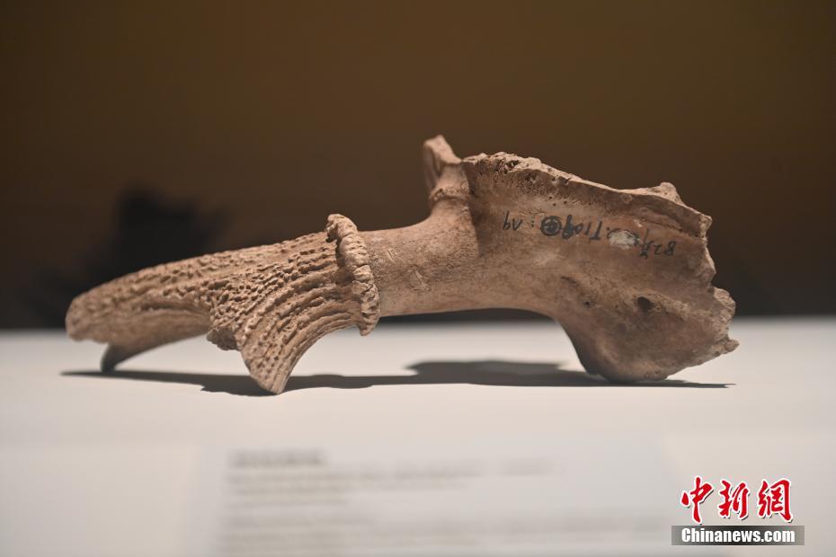 ?。保霸拢玻踩眨玻埃玻辞嗄隄h學(xué)家研修計劃甘肅班團隊22個國家的青年漢學(xué)家,走進甘肅省天水市秦安縣大地灣遺址參觀并進行專題研修。大地灣遺址是新石器時代大型聚落遺址,出土了中國乃至世界上最早的彩陶文化、最早的文字符號、種植生產(chǎn)了中國第一批糧食品種黍、出現(xiàn)了最早的宮殿式建筑、發(fā)明了世界最早的水泥地面、創(chuàng)造了最早的繪畫作品——F411地畫。圖為大地灣博物館展品梅花鹿角。中新社記者 李亞龍 攝