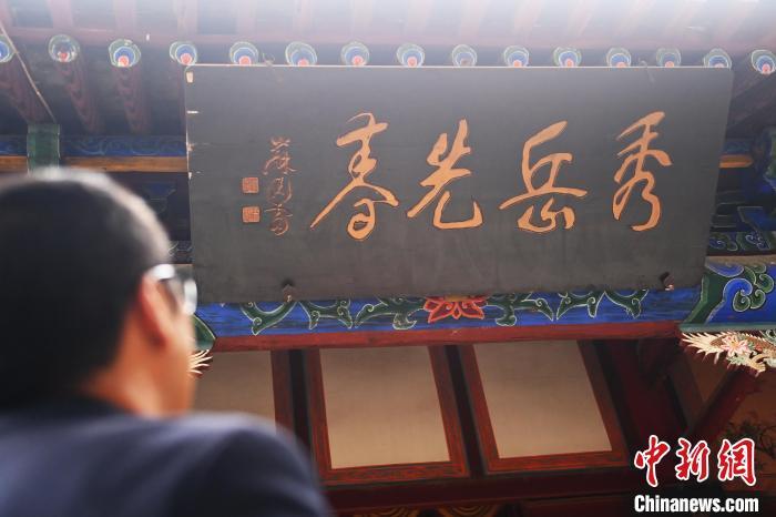 10月23日,甘肅省天水市秦安縣鳳山景區(qū),講解員介紹魯岱下人許行所題隸書“秀岳先春”的匾額。匾額文化是中華民族獨特的民俗文化,它把辭賦詩文、書法篆刻、建筑藝術(shù)融為一體。秦安作為歷史文化名城,其不少景區(qū)內(nèi)都存在歷史名人所題珍貴匾額,見證了歷史變遷。中新社記者 李亞龍 攝
