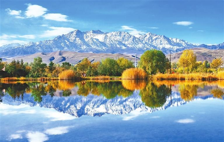 民樂(lè)縣西區(qū)公園層林盡染,在雪山的映襯下美不勝收。新甘肅·甘肅日?qǐng)?bào)通訊員 王曉涇