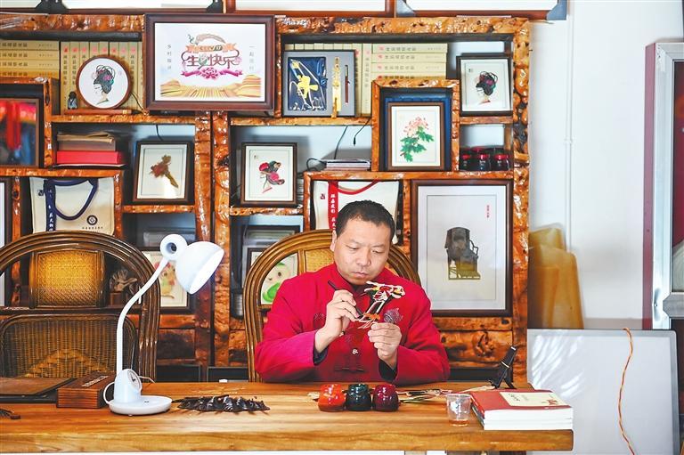 手工藝人張治文借鑒民間剪紙的傳統(tǒng)手法,以牛皮為料,按照制皮、過樣、雕刻、著色、出水、裝訂等工序精心制作一張張皮影。道情皮影既是演出的道具又是獨(dú)立的藝術(shù)品,魅力在于其獨(dú)特的表演形式和精湛的制作工藝。