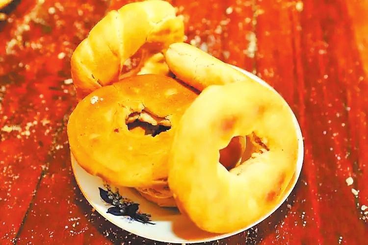 酥油圈圈是甘谷的傳統(tǒng)面點(diǎn),以精細(xì)白面為主料,加入上等胡麻油和各種香料,經(jīng)過(guò)精心制作。這種面點(diǎn)咬在嘴里香酥可口,咸淡適中,油而不膩,令人回味無(wú)窮。