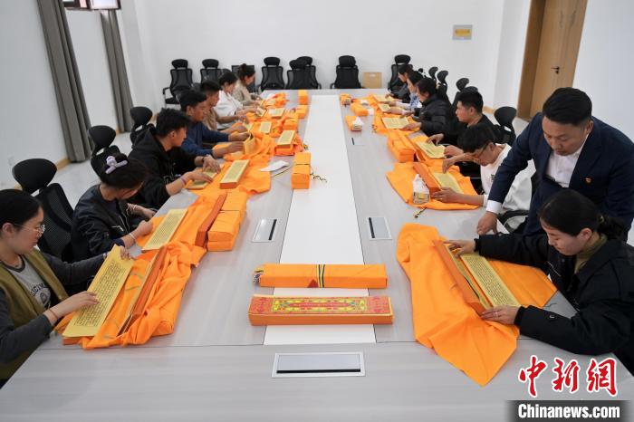 2月27日,在甘肅甘南藏族自治州碌曲縣益西達(dá)吉科技有限公司內(nèi),工作人員正在進(jìn)行藏文古籍?dāng)?shù)字化相關(guān)工作。該公司主要從事民族古籍?dāng)?shù)字化建設(shè)和古籍文獻(xiàn)數(shù)據(jù)庫建設(shè),自2019年以來,承擔(dān)西藏、四川、甘肅等省區(qū)的藏文古籍?dāng)?shù)字化項(xiàng)目。圖為工作人員對藏文古籍(木刻版)做數(shù)字化工作前期準(zhǔn)備。中新社記者 九美旦增 攝