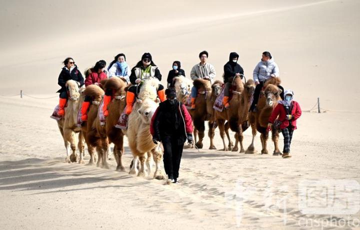 2025年3月2日,游客在甘肅省敦煌市鳴沙山月牙泉景區(qū)游覽。從3月1日開始,至3月31日,甘肅省敦煌市鳴沙山月牙泉景區(qū)、世界文化遺產(chǎn)玉門關(guān)遺址、敦煌雅丹世界地質(zhì)公園三大市屬景區(qū)推出門票半價優(yōu)惠政策,吸引游客走進敦煌,欣賞大漠風(fēng)光,體驗絲路風(fēng)情。中新社發(fā) 張曉亮 攝