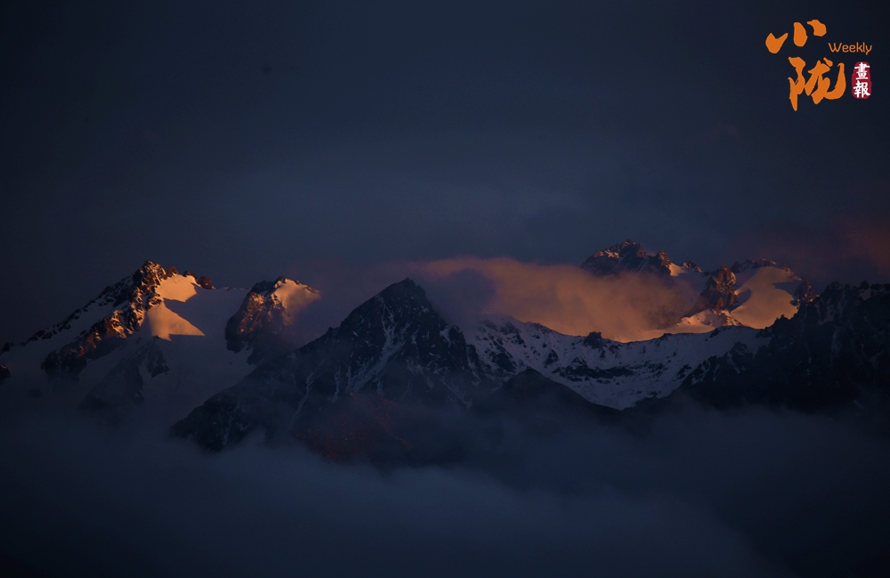 側(cè)目而視,近日一場(chǎng)降雪和夏日閑云相伴相依,近處的雪和遠(yuǎn)處的云相映成趣,共同把天空擦拭得深藍(lán)如鏡。這種“積雪長(zhǎng)留峰素裹,浮云飄忽去無(wú)邊”的夢(mèng)幻景色,會(huì)將你平日里積蓄在心頭的那些世俗凡塵濯洗得干干凈凈,有一種遠(yuǎn)離人世的幻覺。