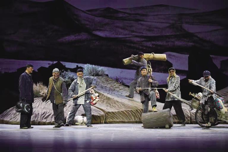 話劇《八步沙》別具匠心地從自然、歷史、人生三項維度,展現(xiàn)“六老漢”的奮斗歷程,再現(xiàn)“六老漢”三代人治沙的感人故事。劇中人物形象鮮明,表演真實,質(zhì)樸感人,劇情節(jié)奏一氣呵成,舞美簡潔大氣,轉(zhuǎn)場巧妙,充滿戲劇沖突和懸念。