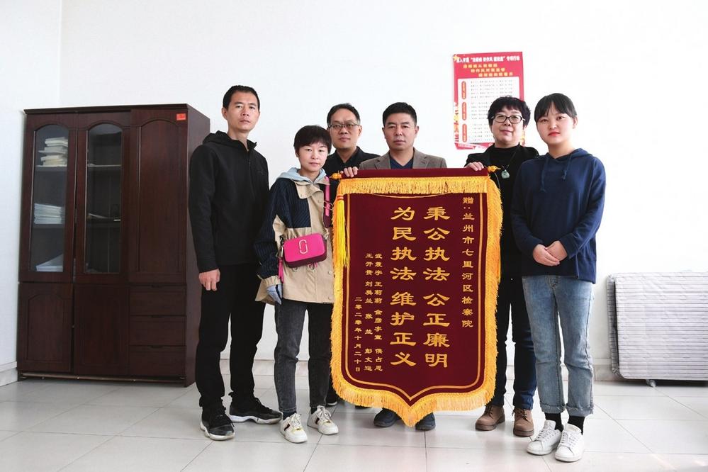中國甘肅網(wǎng)10月27日訊 據(jù)蘭州晚報報道(記者 許沛潔 文/圖) “今天,我們專程過來感謝各位檢察官。你們維護了公平正義,如果沒有檢察院的依法監(jiān)督,我們這8個家庭就要背負(fù)287萬元的債務(wù)!”這份感謝來自七里河區(qū)檢察院辦理的一起民事審判監(jiān)督系列案件的多名申請人。10月26日,他們將一面錦旗交到了七里河區(qū)檢察院梁德安副檢察長和第四檢察部負(fù)責(zé)人手中,表達對辦案檢察官的感謝之情。