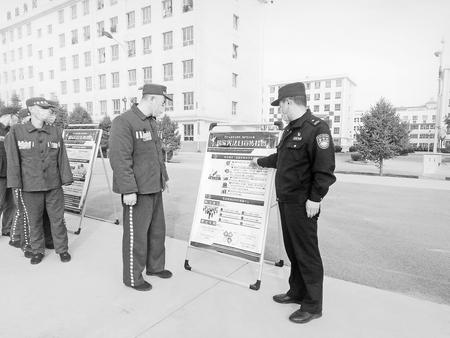 平?jīng)霰O(jiān)獄民警向市民發(fā)放憲法宣傳彩頁(yè)。新甘肅·甘肅法制報(bào)通訊員白宏斌攝