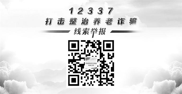 為廣泛接收群眾舉報線索,嚴(yán)厲打擊假借養(yǎng)老之名實施詐騙的違法犯罪行為,依法保護(hù)老年人合法權(quán)益,中央政法委在12337智能化舉報平臺開通了“打擊整治養(yǎng)老詐騙”舉報通道,群眾可通過掃描右側(cè)二維碼,登錄12337智能化舉報平臺反映問題。同時,還可通過撥打110報警電話等渠道,反映涉及養(yǎng)老詐騙違法犯罪等相關(guān)問題線索。