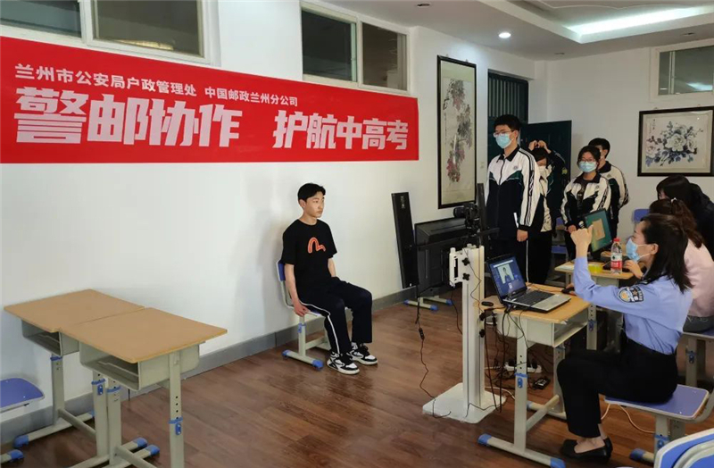 為了最大限度節(jié)省莘莘學子們緊張的復習時間,5月19日至20日,蘭州市公安局戶政管理處聯(lián)合中國郵政蘭州分公司,攜手七里河分局、七里河分局小西湖派出所及城關(guān)分局酒泉路派出所,市、區(qū)、派出所三級聯(lián)動,一起走進蘭州西北中學與蘭州一中,將辦證窗口前移至校園,通過現(xiàn)場拍攝照片、離線采集指紋等方法,為即將參加高考的學生們提供“足不出校”即可辦理居民身份證的便捷服務(wù),將“服務(wù)群眾零距離”的服務(wù)承諾落到實處。