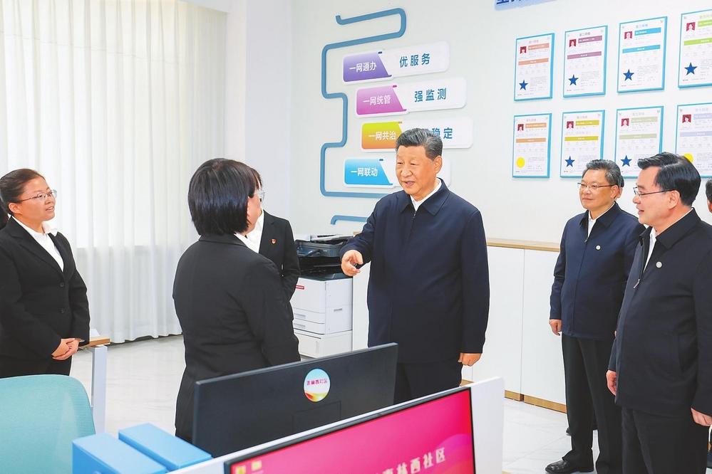 9月10日至13日,中共中央總書(shū)記、國(guó)家主席、中央軍委主席習(xí)近平在甘肅考察。這是11日下午,習(xí)近平在蘭州市公安局安寧分局劉家堡派出所考察。新華社記者燕雁
