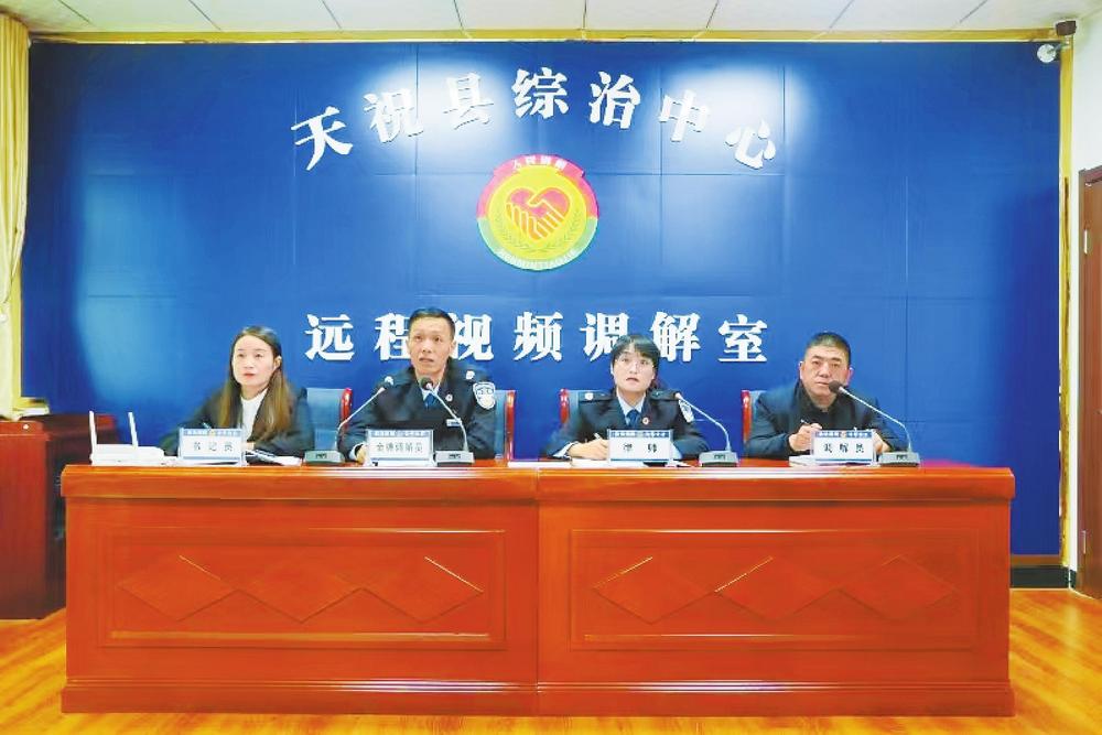 “針對(duì)全縣地域面積廣、群眾居住分散的實(shí)際,我們探索建立‘天涯若比鄰、服務(wù)零距離’遠(yuǎn)程視頻調(diào)解工作法,縣、鄉(xiāng)綜治中心視聯(lián)互通,開展‘線上’法律咨詢、政策解答和糾紛化解,有效降低群眾‘來(lái)回跑’的成本。”天??h委政法委副書記俞天煒說(shuō),通過建立“線上與線下結(jié)合、點(diǎn)上與面上結(jié)合、專業(yè)與兼職結(jié)合”的開放式、多層次、寬領(lǐng)域心理健康服務(wù)體系,全力打造“全民塑心、健康華銳”品牌,提升群眾心理健康指數(shù),疏導(dǎo)不良情緒,化解社會(huì)矛盾,維護(hù)社會(huì)穩(wěn)定。