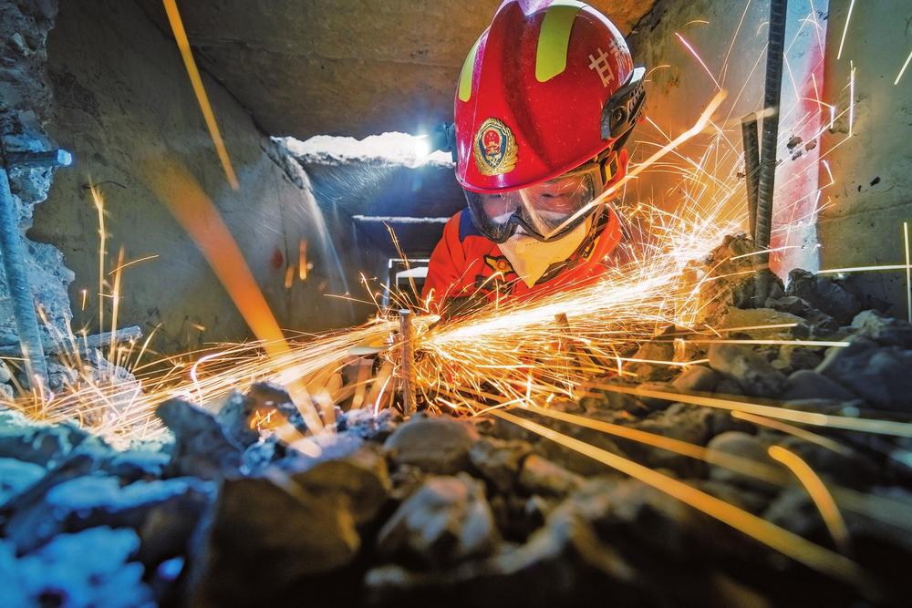 眼看就要取得勝利,余震突然來襲,救援現(xiàn)場可能出現(xiàn)二次坍塌的風(fēng)險。救援人員迅速組織人員撤離,在確?,F(xiàn)場環(huán)境安全后對風(fēng)險點進行支撐加固處理,再次展開救援。
