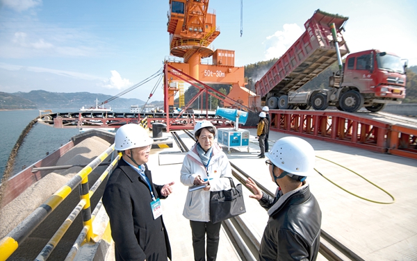 重慶市萬州區(qū)紀委監(jiān)委圍繞推動成渝地區(qū)雙城經(jīng)濟圈建設(shè)跟進監(jiān)督,保障重點工程順利推進、廉潔高效。圖為萬州區(qū)紀檢監(jiān)察干部深入重點水運項目新田港現(xiàn)場了解情況。 攝影/冉孟軍(萬州區(qū)紀委監(jiān)委干部)