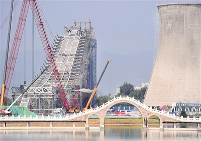 北京冬奧組委踐行節(jié)儉辦奧運(yùn),對(duì)首鋼老工業(yè)園區(qū)再利用,建成滑雪大跳臺(tái)等競(jìng)賽場(chǎng)館。滑雪大跳臺(tái)是冬奧歷史上第一座與工業(yè)遺產(chǎn)再利用直接結(jié)合的競(jìng)賽場(chǎng)館。圖為2019年7月工人在改造滑雪大跳臺(tái)。新華社記者 張晨霖 攝