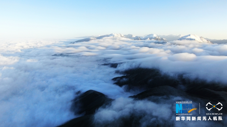 這是8月18日在甘肅省肅南裕固族自治縣境內(nèi)拍攝的祁連山云霧景觀。當(dāng)日,祁連山區(qū)云霧繚繞,從高空俯瞰,如波濤洶涌起伏,與雪山、藍(lán)天相互輝映,美不勝收。(飛手:武雪峰 攝影:安維斌)